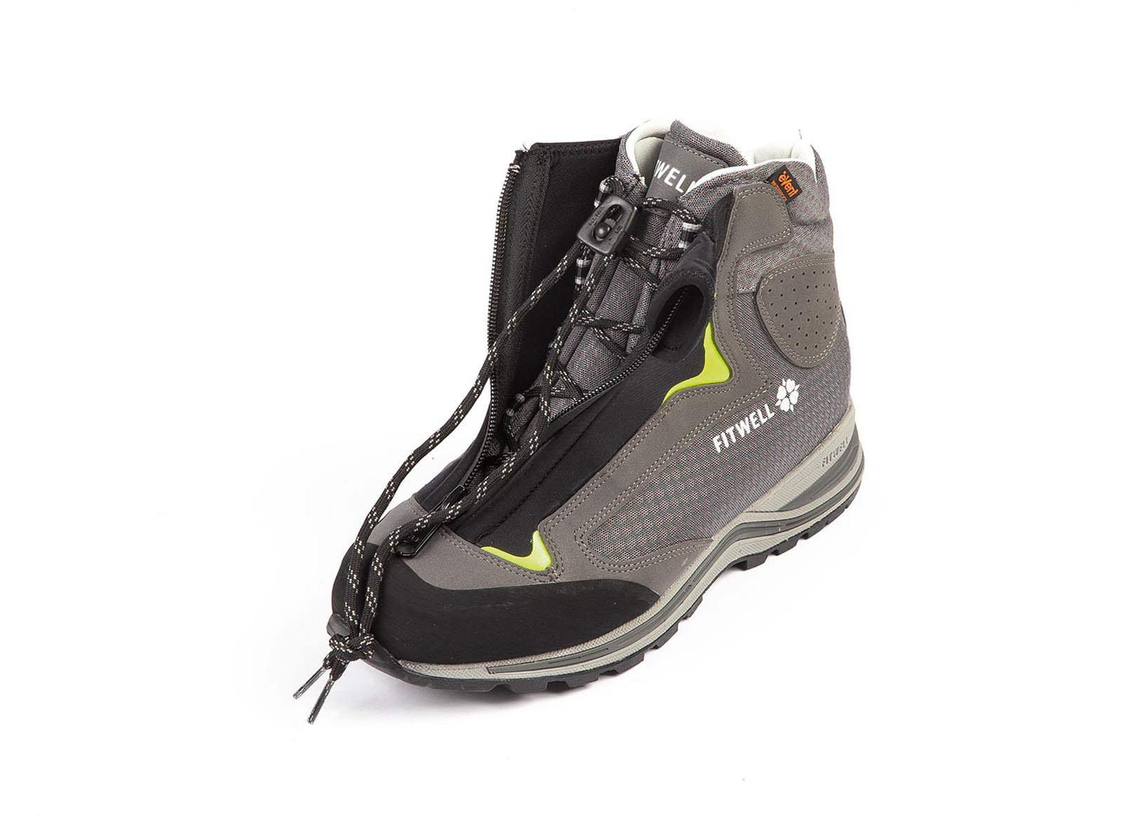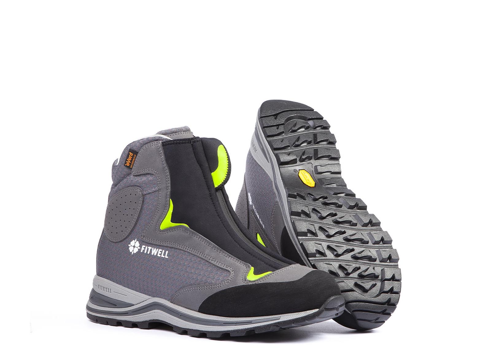 Innovative footwear, one of a kind, designed to best meet the needs of paragliding. Performance upper with gaiter and zip to avoid hitches during take-off and landing. Waterproof membrane coupled with mesh for maximum breathability. Rubber tip protection and buttress reinforcement in the heel area. Insole with differentiated structure that ensures reactivity in the thrust phase. Vibram® Predator sole in Megagrip compound with custom Fitwell double density EVA midsole, lightweight and cushioning, also ideal for trekking.