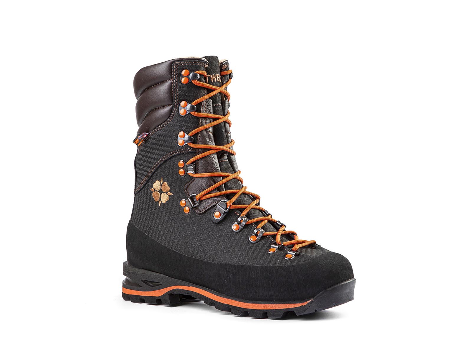 Boot dedicated to “highland” hunting. Leather upper with Kevlar-effect PU finish, abrasion-resistant and waterproof; thermal and breathable internal lining. Independent cuff to facilitate walking and triple collar in grain leather with hinge effect. Protective rubber band. Wedge composed of layers of microporous material with differentiated density with shock-absorbing stabilizing insert in PU.