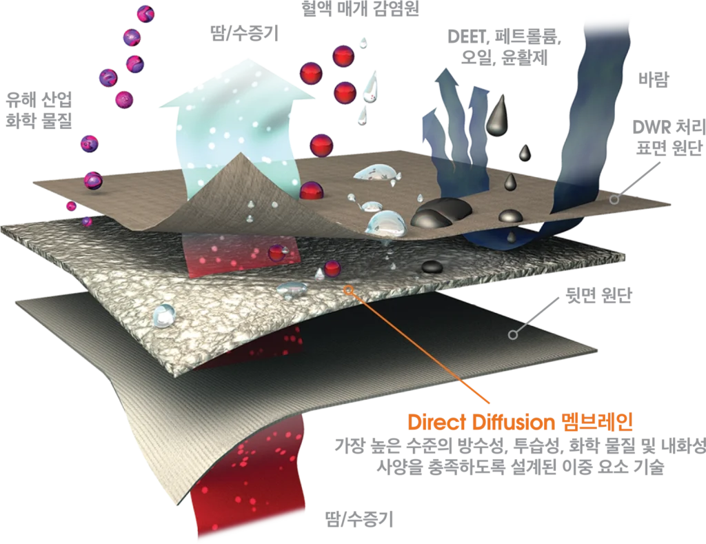 전 세계 군, 경찰, 소방 및 전문가들이 신뢰하는 eVent Protective 기술은 단순히 비바람에 대한 방어뿐만 아니라 화학 물질 및 유해 물질에 대한 필수적인 보호 기능도 제공합니다. 독점적인 이중 구조의 직접 확산 기술로 제작되어 거친 환경에 반복적으로 노출되어도 뛰어난 내구성과 복원력을 유지하여 하루 종일 발을 보호합니다.